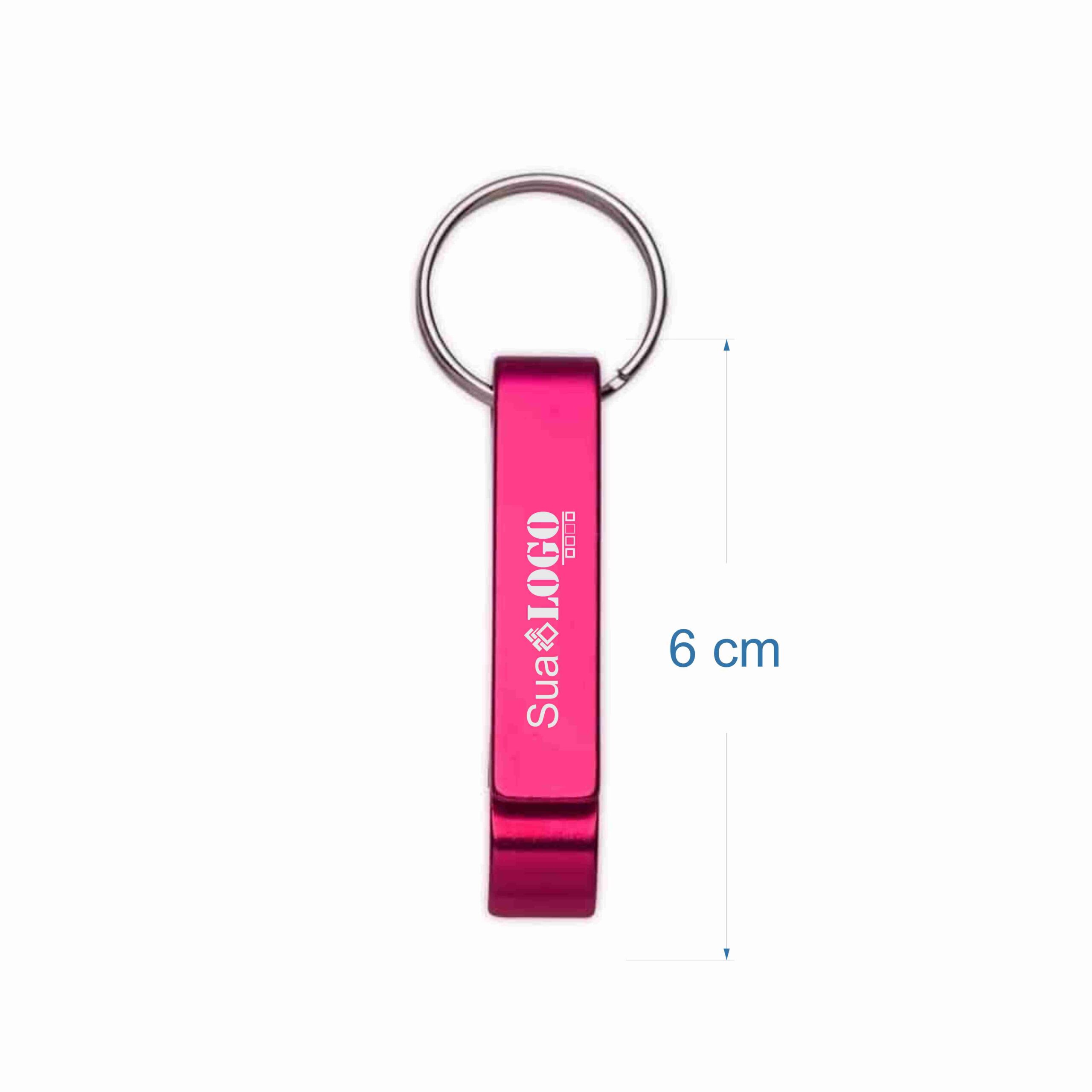 Chaveiro metálico com abridor de garrafas e argola de ferro niquelado.