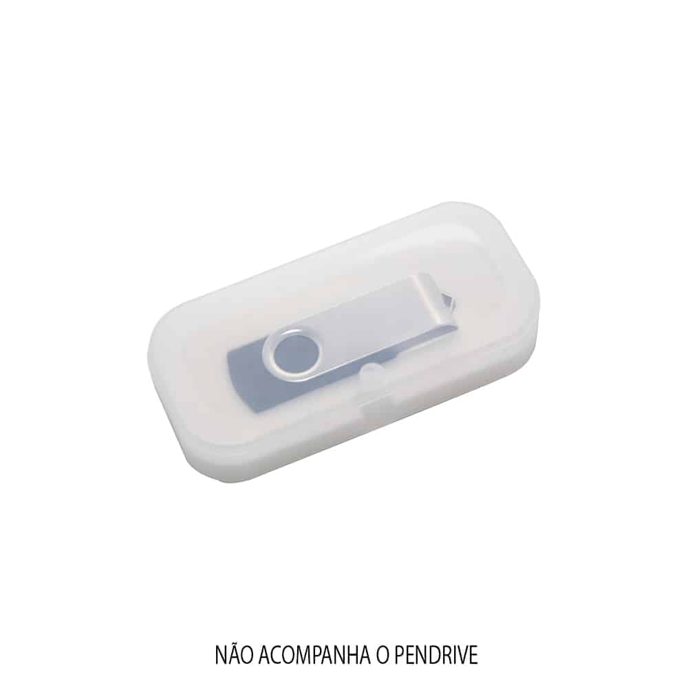Estojo para pen drive em plástico transparente com parte interna revestida de espuma, fecha por encaixe. NÃO ACOMPANHA PENDRIVE