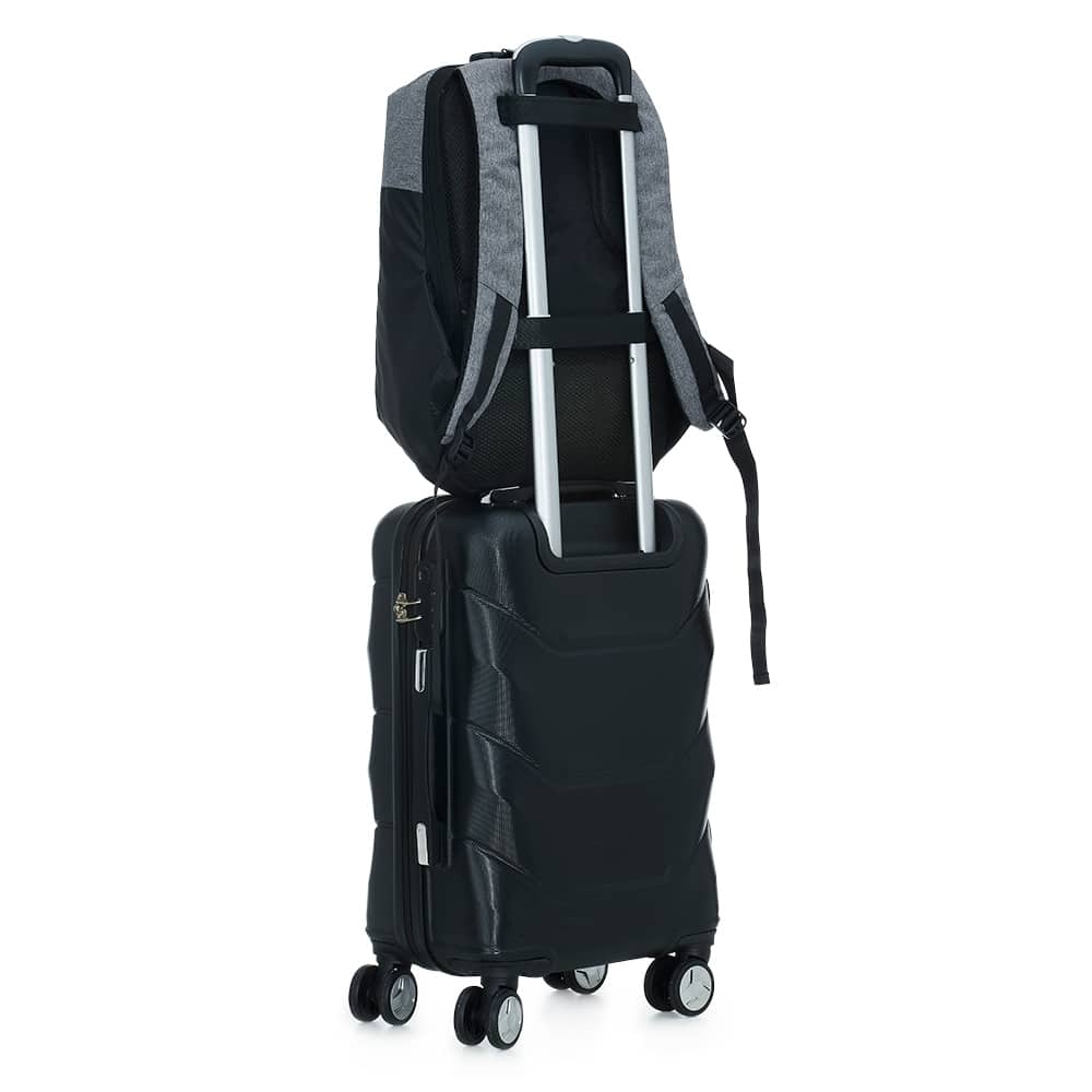 MOCHILA DE POLIÉSTER ANTI-FURTO USB COM SEGREDO 31L SPX-02096-PRE/CIN NA COR PRATA