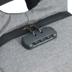 Mochila anatômica antifurto de 31 litros em poliéster resistente à água com três compartimentos, sendo dois deles exclusivos para cartões e proteção contra furto. Contém cadeado numérico, compartimento principal com amplo espaço e bolso para notebook 15,6, bolsos internos, suporte externo usb, alça para encaixe em malas de viagem e revestimento costado espumado. Acompanha plaquinha metálica.