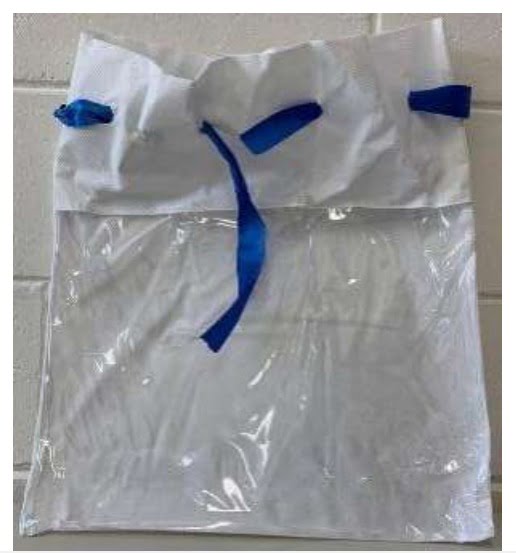 A embalagem tipo saco será confeccionada em tecido TNT (tecido não tecido) branco, com gramatura mínima de 90 gr/m2 e plástico polivinílico transparente com espessura