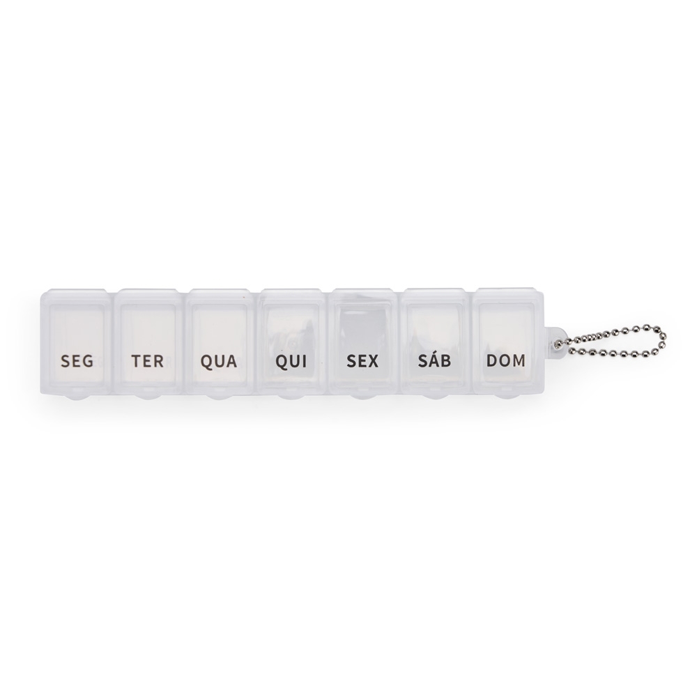 Este porta comprimidos ideal para ajudar a organizar uma rotina de cuidados com a saúde. Feito em plástico, o porta comprimidos contém sete divisórias com capacidade de até 10 ml. cada compartimento é marcada com o nome de um dia da semana abreviado, tudo para facilitar a separação precisa de medicamentos para uso de forma contínua. Além disso, acompanha uma corrente de bolinhas para encaixar no porta comprimidos e pendurá-lo em um chaveiro ou alça.